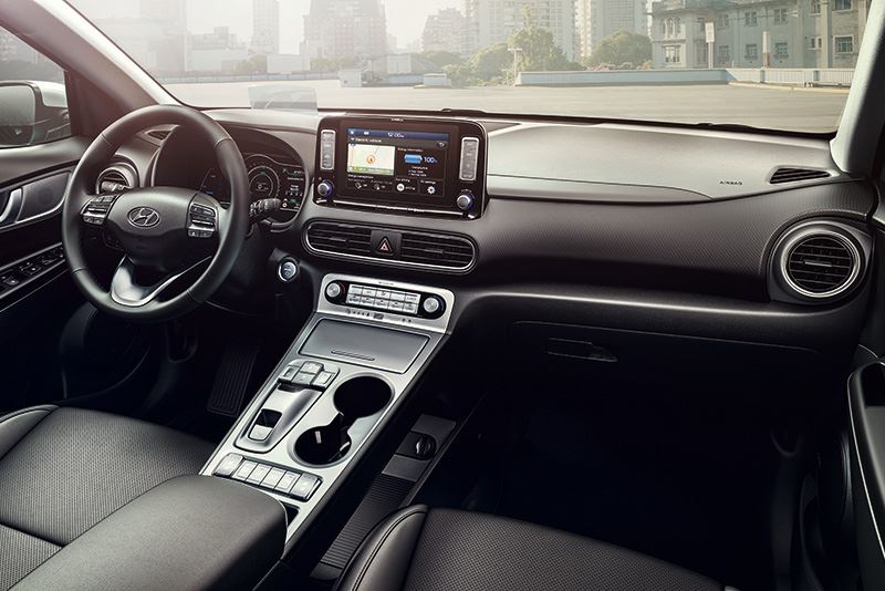 De nieuwe KONA Electric beschikt over uitgebreide connectiviteitsdiensten. Het infotainmentsysteem met 7-inch capacitief LCD-display (Display Audio) vormt het startpunt voor het bieden van de navigatie, media en connectiviteitsvoorzieningen. Display Audio ondersteunt bovendien Apple CarPlay, Android Auto en Bluetooth-connectiviteit. Het Display Audio systeem geeft verder het beeld van de standaard achteruitrijcamera met dynamische hulplijnen weer voor eenvoudig inparkeren. Optioneel levert Hyundai een 8,0-inch touchscreen met dezelfde functionaliteiten, maar dan aangevuld met een gratis zevenjarig abonnement op LIVE-diensten waarbij informatie over het weer, het verkeer, snelheidscamera's (waar dit is toegestaan) en online zoekopdrachten naar POI's binnen handbereik is. Het navigatiesysteem heeft verder 3D-kaarten en Hyundai's unieke Lifetime MapcareTM met jaarlijks een gratis kaart- en software-update.