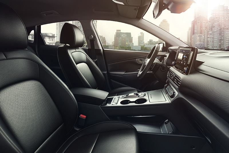 De KONA Electric is leverbaar met achtvoudig elektrisch verstelbare voorstoelen, voor maximaal comfort. De bestuurdersstoel heeft nog een tweevoudig elektrisch verstelbare lendensteun. De voorstoelen hebben een driefase ventilatiefunctie en driefase verwarmingsfunctie. Optioneel levert Hyundai een verwarmbaar stuurwiel.