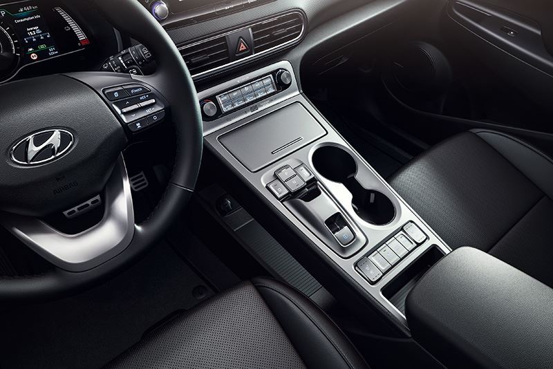 Smartphones kunnen draadloos worden opgeladen via een inductielader (Qi-standaard). De oplaadstatus van de smartphonebatterij wordt weergegeven met indicatielampjes. Om te voorkomen dat de smartphone bij het verlaten van de auto achterblijft, geeft het systeem een herinnering op het centrale display. Elke KONA Electric heeft standaard een USB- en AUX-aansluiting.