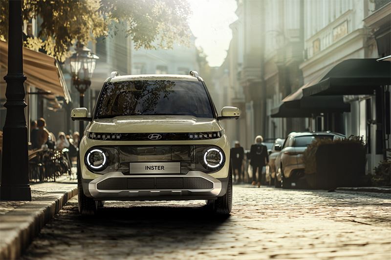 Het gedurfde uiterlijk van de INSTER combineert een futuristisch, innovatief design met een ruim interieur in een compacte SUV-outfit. De elektrische Hyundai valt op door zijn moderne dagrijverlichting en pixel-grafische richtingaanwijzers en achterlichten. Afhankelijk van de gekozen uitvoering is dat LED- of halogeenverlichting. Klanten kunnen de auto verder personaliseren met LED-projectiekoplampen en een van de 9 leverbare exterieurkleuren.