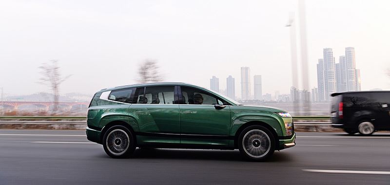 De IONIQ 9 is gebouwd op het geavanceerde E-GMP-platform met 800V-systeem, waardoor 5 minuten snelladen een extra 100 km actieradius oplevert.