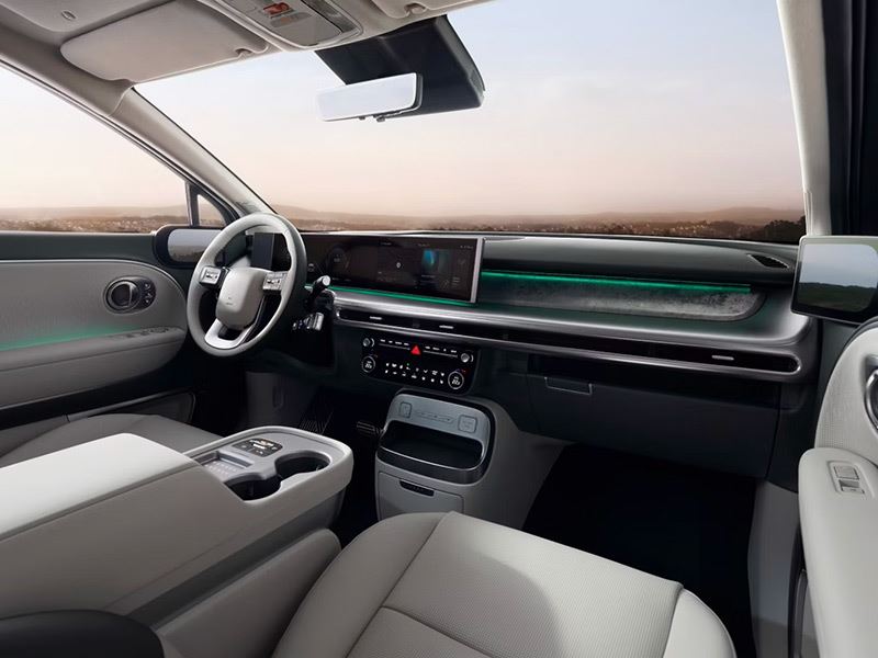Binnenin is het interieur ontworpen als een lounge: comfortabele stoelen, duurzame materialen, een dubbele 12,3-inch displayconfiguratie, draadloze connectiviteit en Hyundai AI Assist op basis van generatieve AI maken het rijden comfortabel én intuïtief.