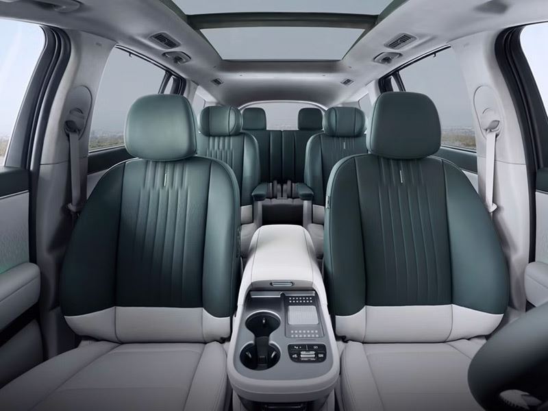 Voor wie alleen het allerbeste goed genoeg is, is er de Lounge. Deze topuitvoering transformeert de IONIQ 9 tot een rijdende lounge, met Nappa-lederen stoelbekleding, suède hemelbekleding, aluminium designaccenten en zelfs UV-C, ultraviolet cleaning, voor extra hygiëne. Enkele highlights van de IONIQ 9 Lounge: