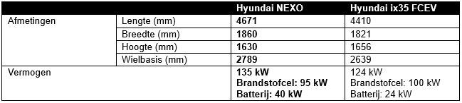 - De NEXO heeft een geschatte actieradius van 800 km (volgens NEDC) tegenover 600 km voor de Hyundai ix35 FCEV