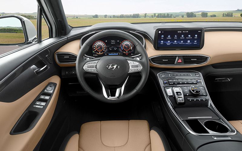 Vergeleken met eerdere modellen voorziet de nieuwe Santa Fe in meer ruimte, comfort en gemak. De zachte afwerking van alle interieurdelen tilt de Santa Fe naar een hoger niveau van luxe. Opvallend is een visueel lager ogend dashboarddesign, een nieuw ontworpen middenconsole en een nieuw 10.25-inch AVN touchscreen. De zwevende middenconsole met shift-by-wire buttons is door middel van een lichte ronding verbonden met het dashboard. Voor de eerste keer komt de Santa Fe met een Terrain Mode keuzeschakelaar: een controleknop in de middenconsole waarmee makkelijk geschakeld kan worden tussen verschillende rijmodi.