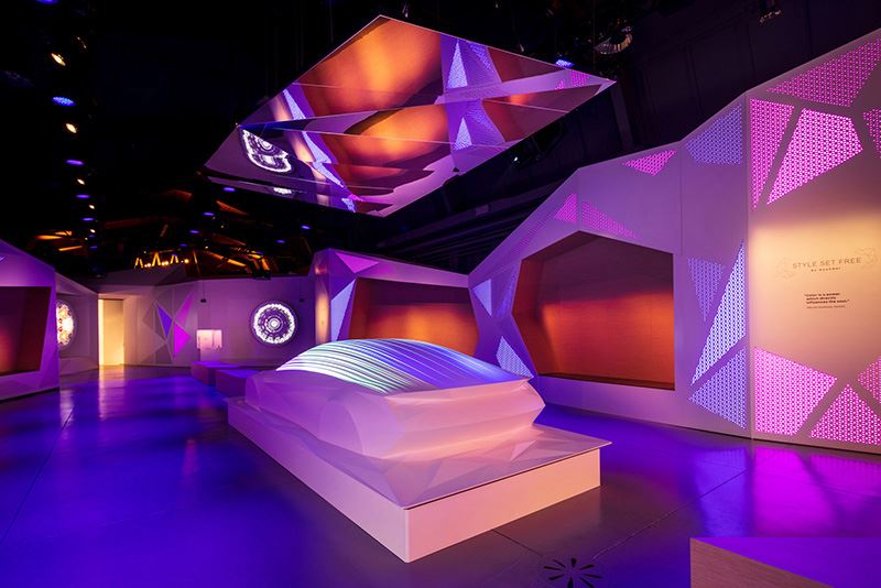 Het middelpunt in de expositie is ‘the Sculpture’, een kunstzinnige interpretatie van ‘STYLE SET FREE’. De continu veranderende, creatieve en boeiende installatie laat de drie essentiële elementen van het auto-interieur volgens Hyundai’s nieuwe brand experience zien: Kleur & Licht, Materiaal, en Vorm & Geluid. Elk element komt tot leven dankzij hoogwaardige digitale animaties die elk twaalf minuten duren en door een reeks interactieve installaties.
