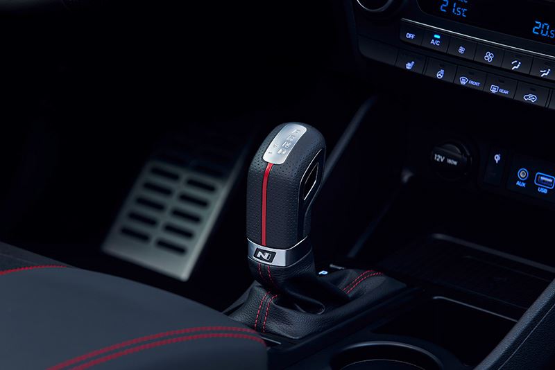 In het interieur zijn de met suèdeleder beklede sportstoelen voorzien van het N-logo. Het stuurwiel en de stoelbekleding zijn afgewerkt met rood stiksel. De lichtmetalen pedalen en de eveneens met leder en rode stiksels beklede N-versnellingshendel zijn ook onderdeel van de verfraaiingen van de N Line.