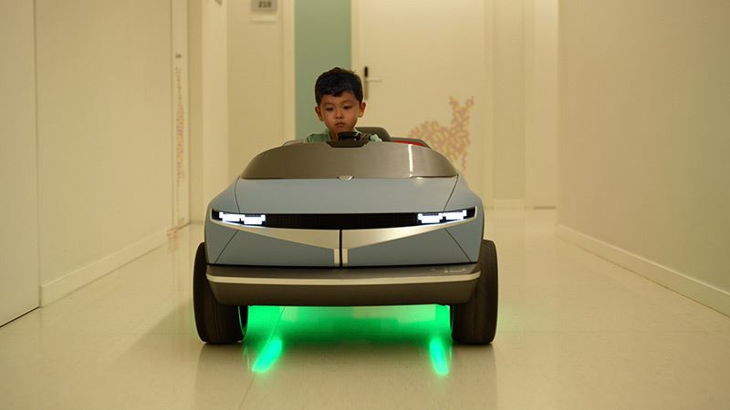 Hyundai schonk zijn unieke elektrische miniauto aan het SJD Barcelona Children’s Hospital. Het ziekenhuis gebruikt de elektrische miniatuurauto om jonge patiënten van het ziekenhuisbed naar de behandelkamer te vervoeren. Dit ritje is voor kinderen heel stressvol en de miniauto van Hyundai moet dit voor de kinderen een stuk draaglijker maken.