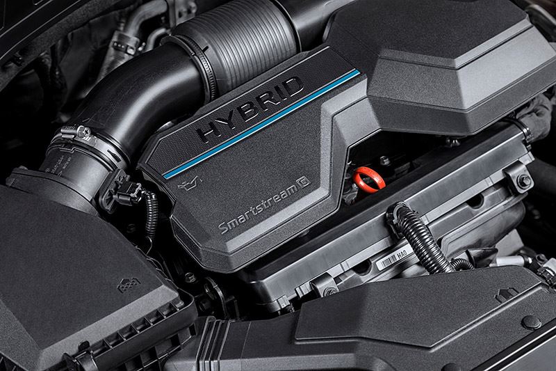 De hybrideversie van de nieuwe Santa Fe die vanaf de introductie leverbaar is, is voorzien van de nieuwe 1.6-liter T-GDi Smartstream-turbobenzinemotor met directe brandstofinspuiting. Die werkt samen met een 44,2 kW elektromotor, die wordt gevoed door een 1,49 kWh lithium-ion-polymeeraccu, voor minder emissies zonder dat dat ten koste gaat van het rijplezier. Het systeemvermogen bedraagt 169 kW (230 pk) en 350 Nm trekkracht. De Santa Fe is er met voor- en vierwielaandrijving.